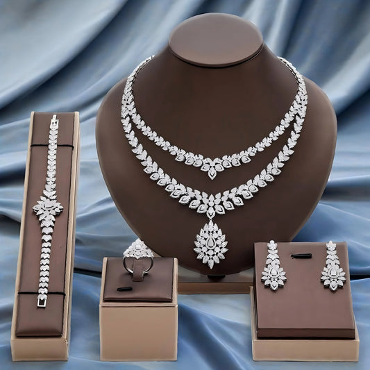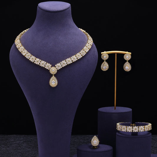 Luxury two-tone jewelry set with cubic zirconia.