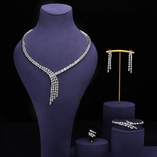 Necklace and earring set with cubic zirconia stones.